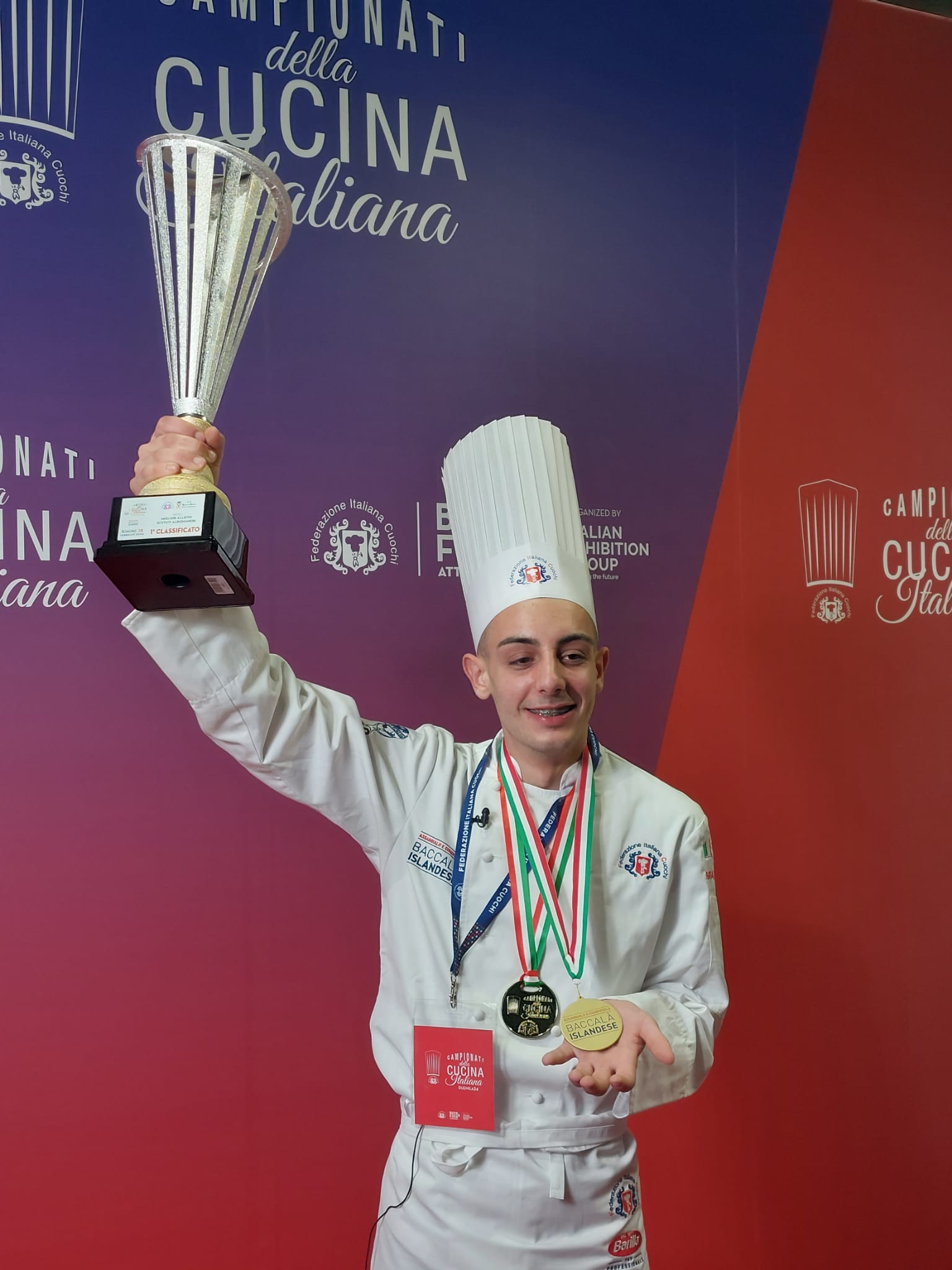 A dimostrazione di quanto dichiarato da Björgvinsson, a consegnare il premio ad Alessandro Abbrescia, è stato il vincitore dello scorso anno, Francesco Orsi di Sasso Marconi (BO), che dopo aver ricevuto il titolo di Miglior Allievo 2023, si è classificato terzo al prestigioso concorso mondiale Young Chef Olympiad, tenutosi qualche settimana fa in India. Francesco si è distinto nella gara internazionale dando dimostrazione delle sue qualità di cuoco in una competizione difficile e serratissima che ogni anno si tiene tra le più apprezzate scuole di cucina al mondo e a cui lui ha potuto partecipare proprio in virtù della vittoria al concorso Cuochi Miglior Allievo organizzato dalla Federazione Italiana, vincendo con la una ricetta a base di Baccalà Islandese.